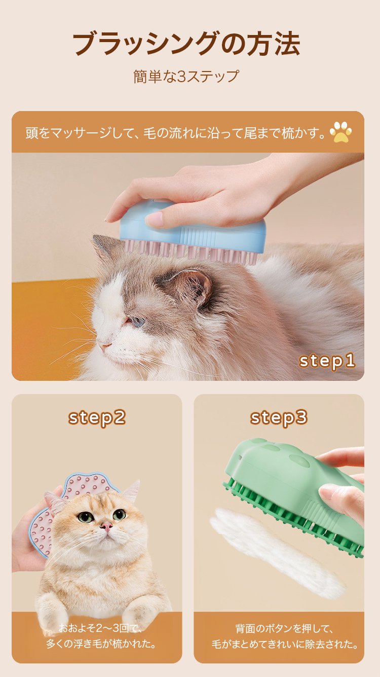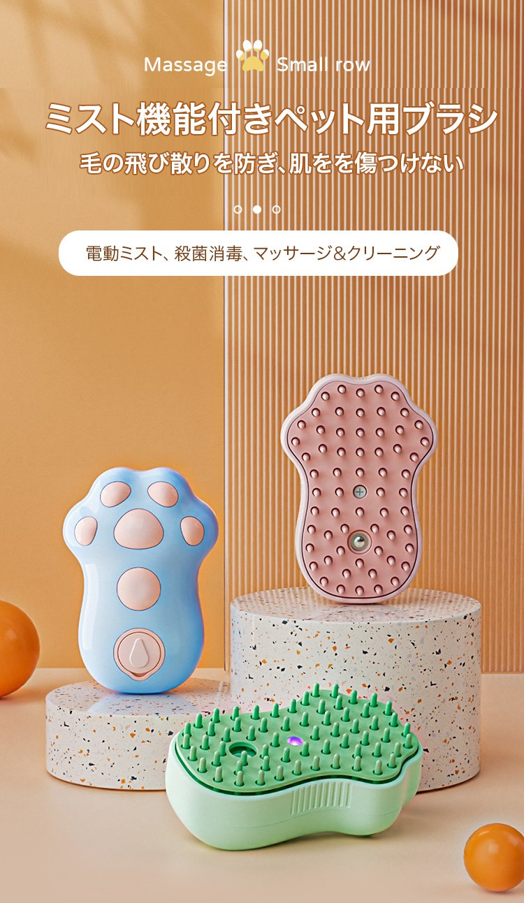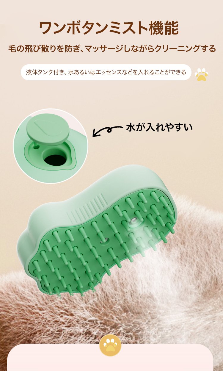 ミスト機能付きペット用ブラシ